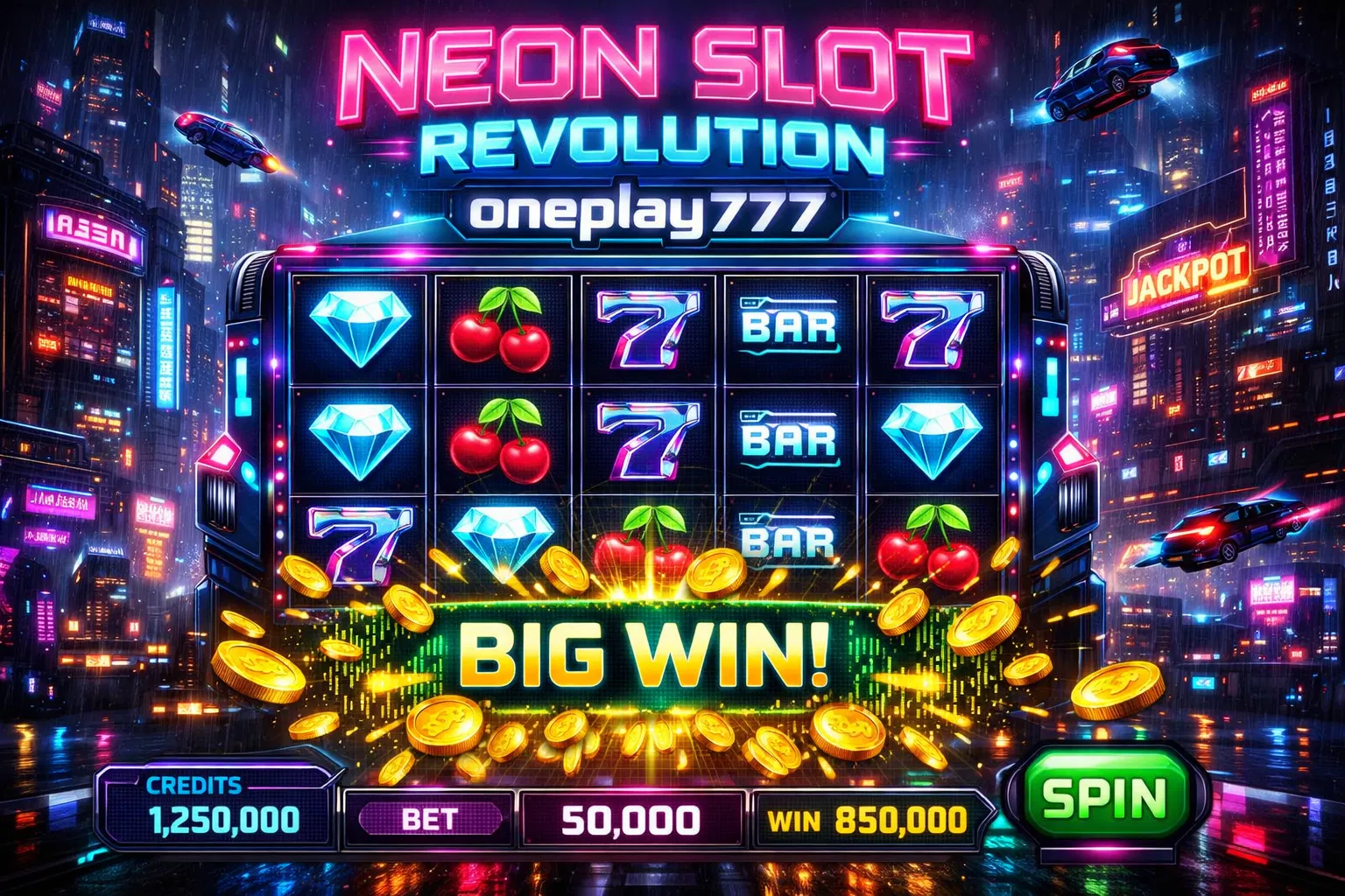 • Nuansa futuristik dan teknologi luar angkasa yang menampilkan grafis neon serta efek suara digital yang sangat modern untuk pengalaman bermain yang lebih canggih.